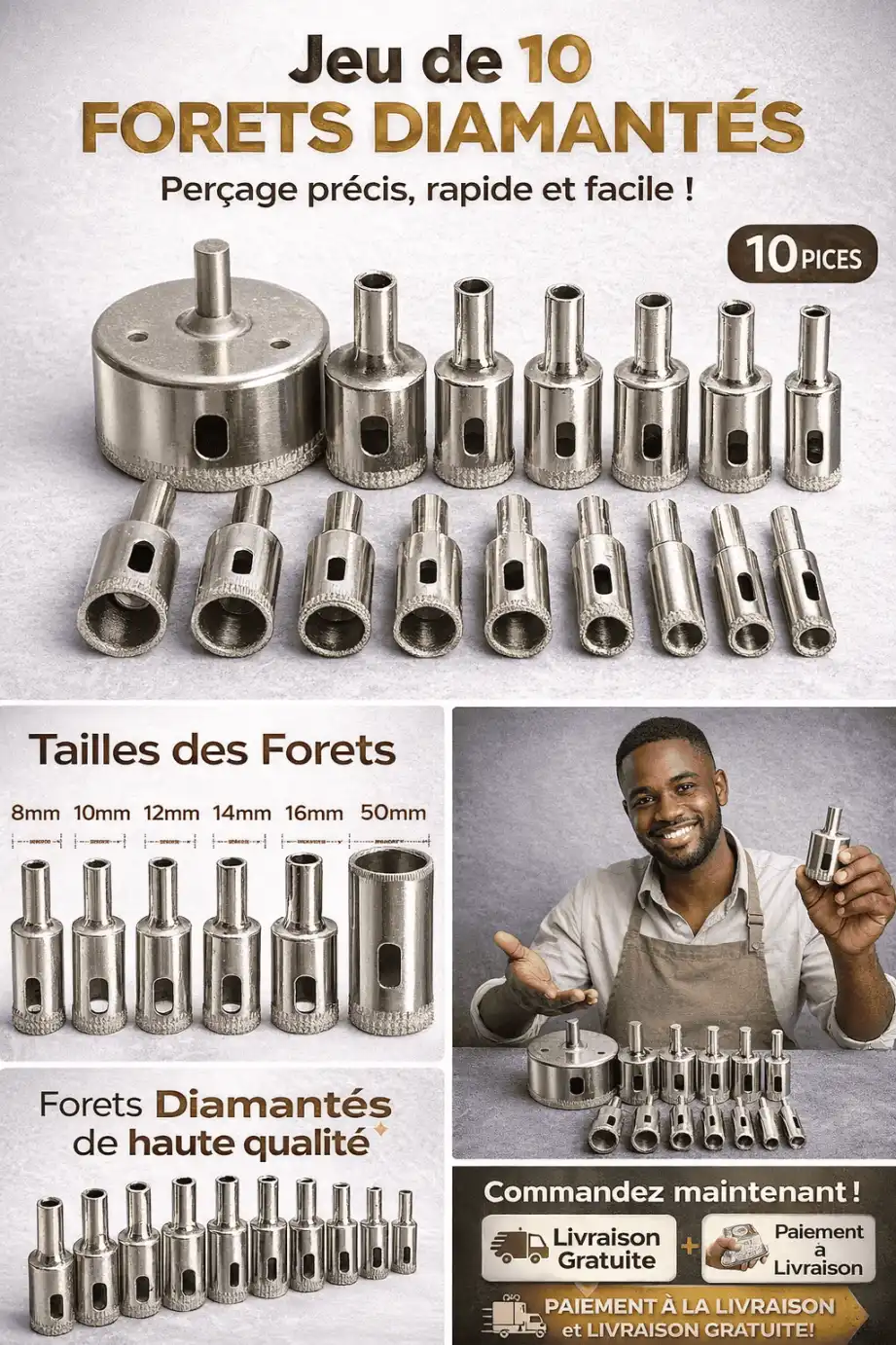 ✔️10 tailles (6–50 mm) pour tous vos travaux.