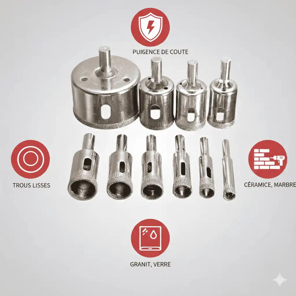 ✔️Perçage rapide et précis sur verre, carrelage, céramique, marbre.